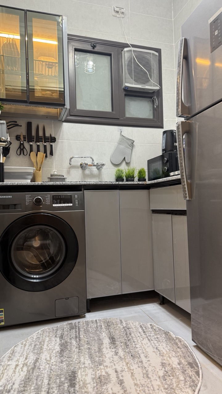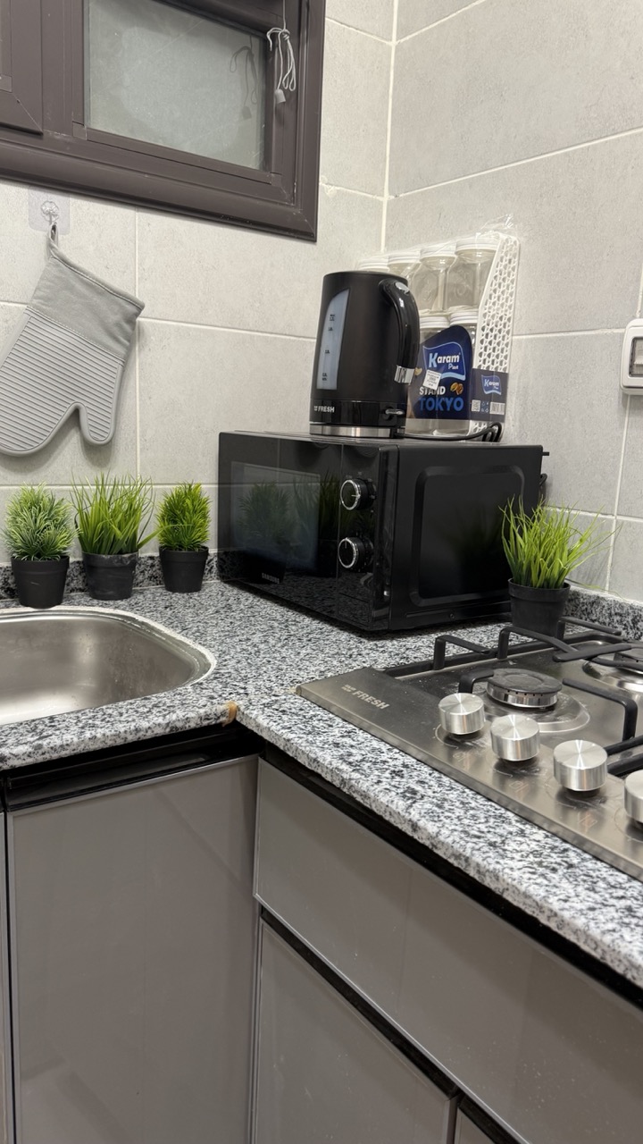 نت فليكس سمارت تي في مكواه ملايات بيضاء وسائد مريحه شماعات جميع ادوات الطهي غلاية مياه ميكرويف خلاط بوتجاز تلاجه فريزر مناديل حمام منشر غسيل غساله فوط بيضا صابون يد ماء ساخن