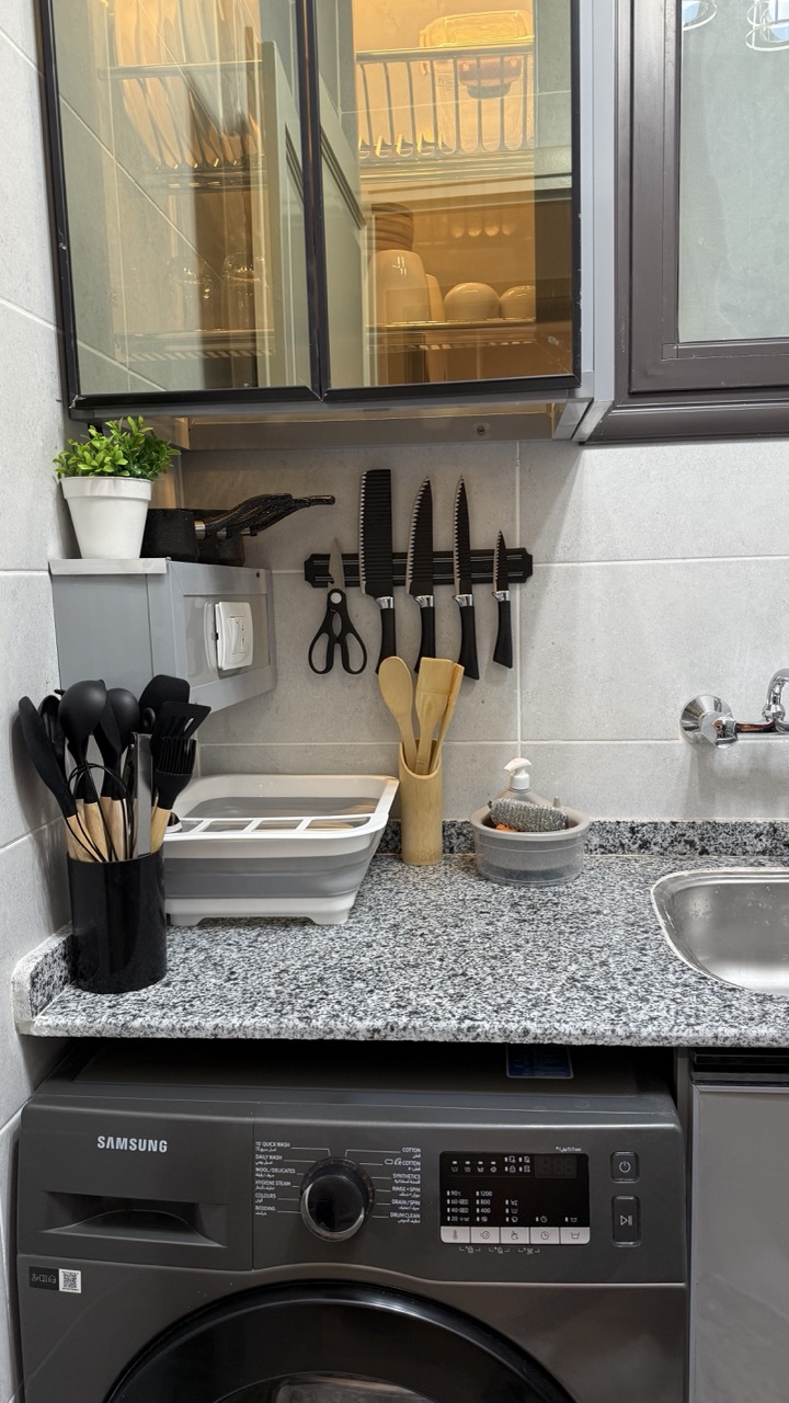 نت فليكس سمارت تي في مكواه ملايات بيضاء وسائد مريحه شماعات جميع ادوات الطهي غلاية مياه ميكرويف خلاط بوتجاز تلاجه فريزر مناديل حمام منشر غسيل غساله فوط بيضا صابون يد ماء ساخن