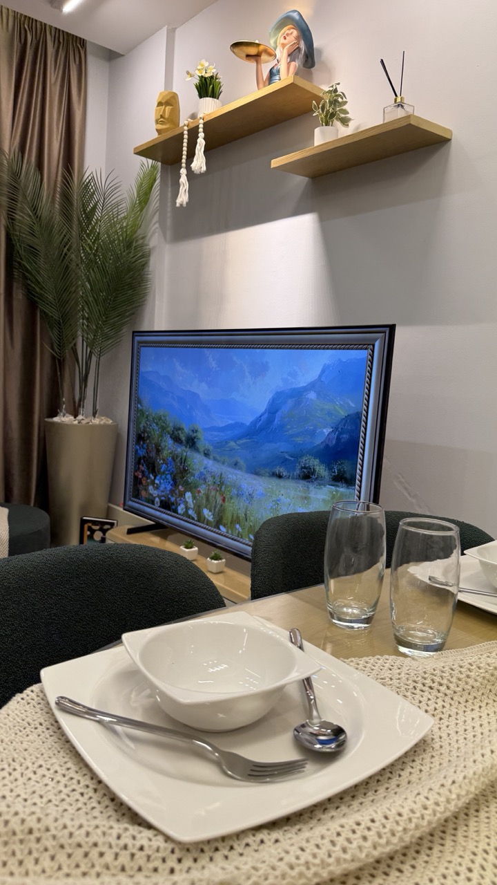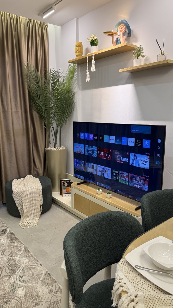 نت فليكس سمارت تي في مكواه ملايات بيضاء وسائد مريحه شماعات جميع ادوات الطهي غلاية مياه ميكرويف خلاط بوتجاز تلاجه فريزر مناديل حمام منشر غسيل غساله فوط بيضا صابون يد ماء ساخن